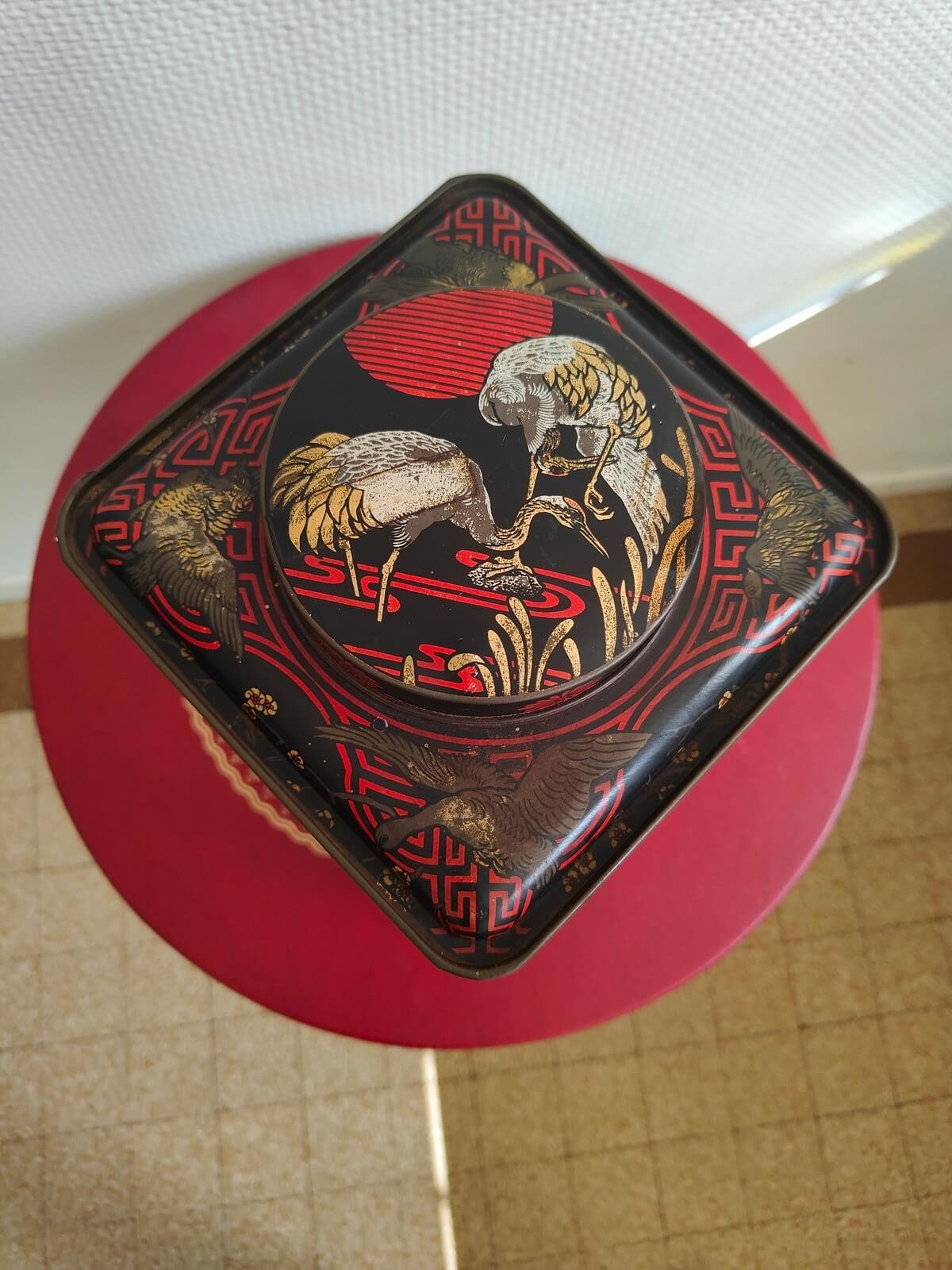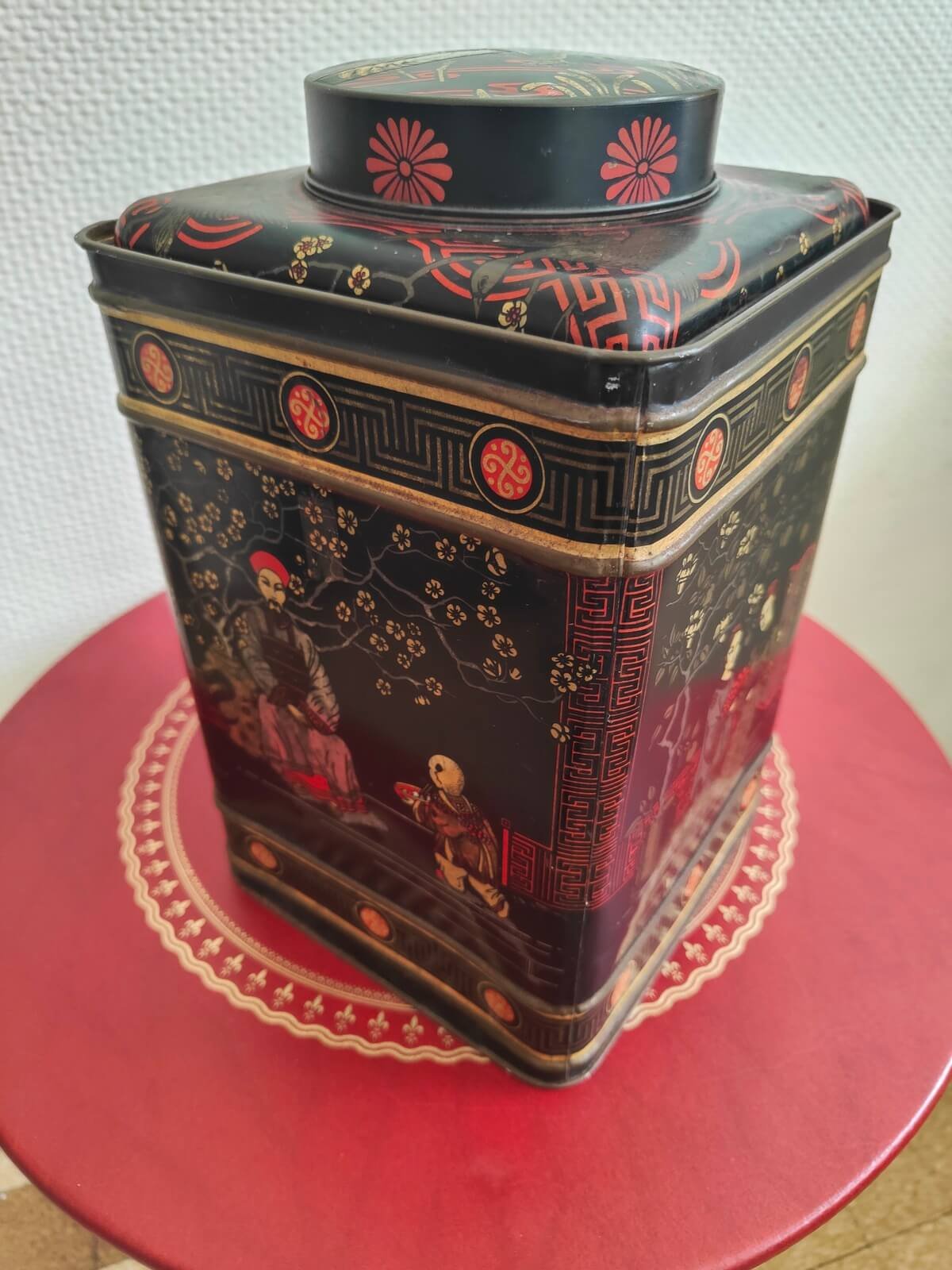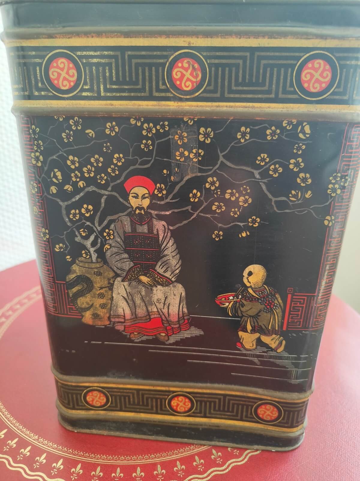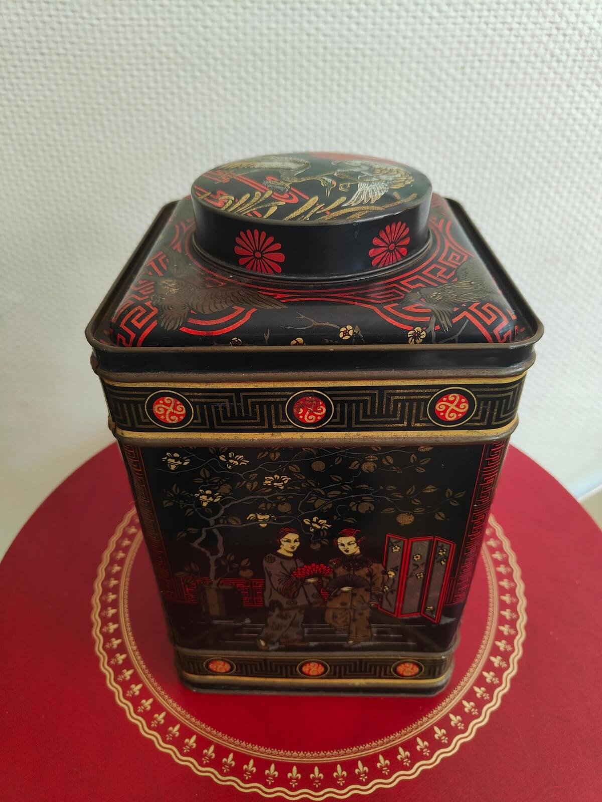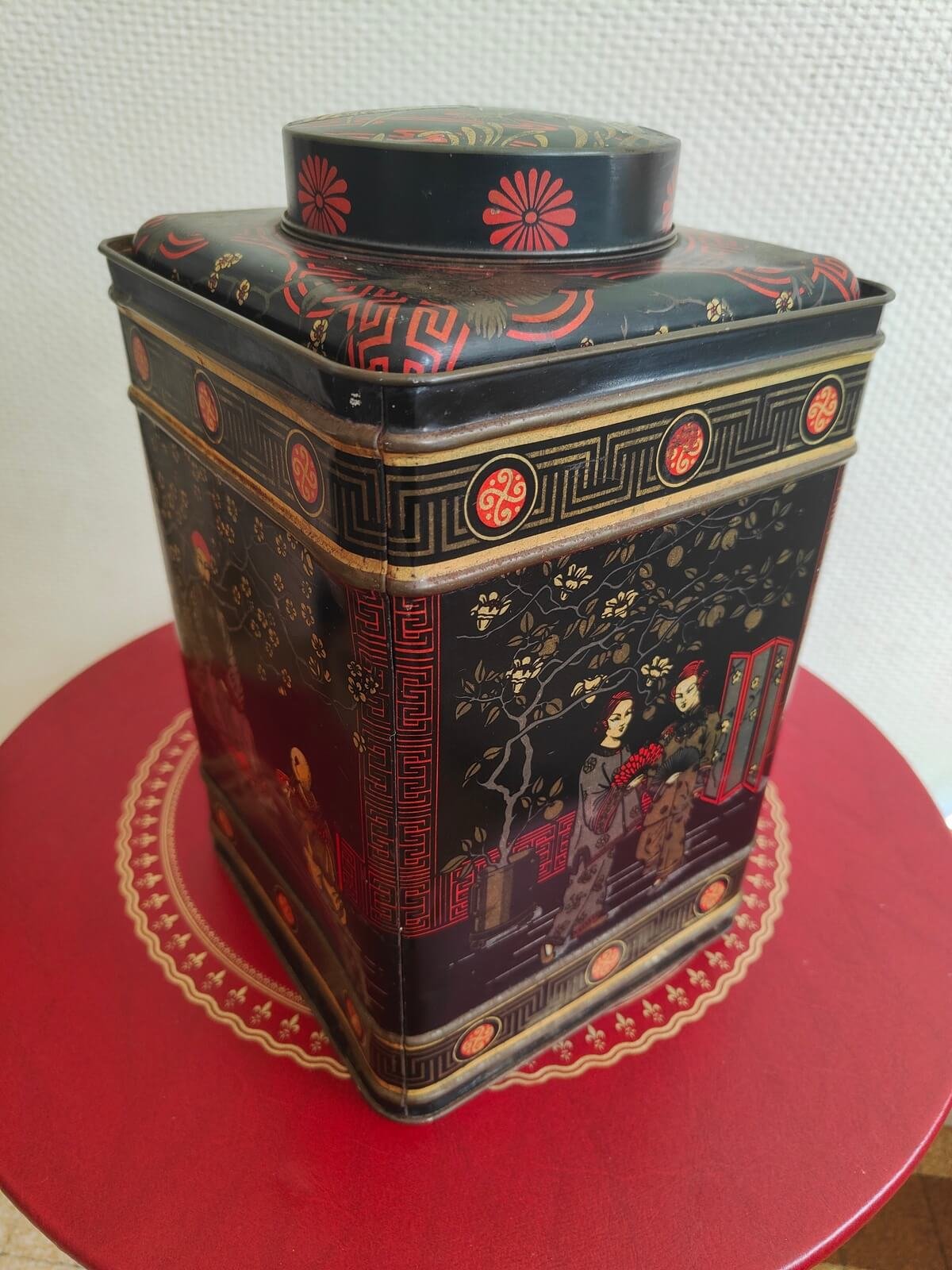 Boîte à thé vintage asiatique en métal – un objet décoratif unique