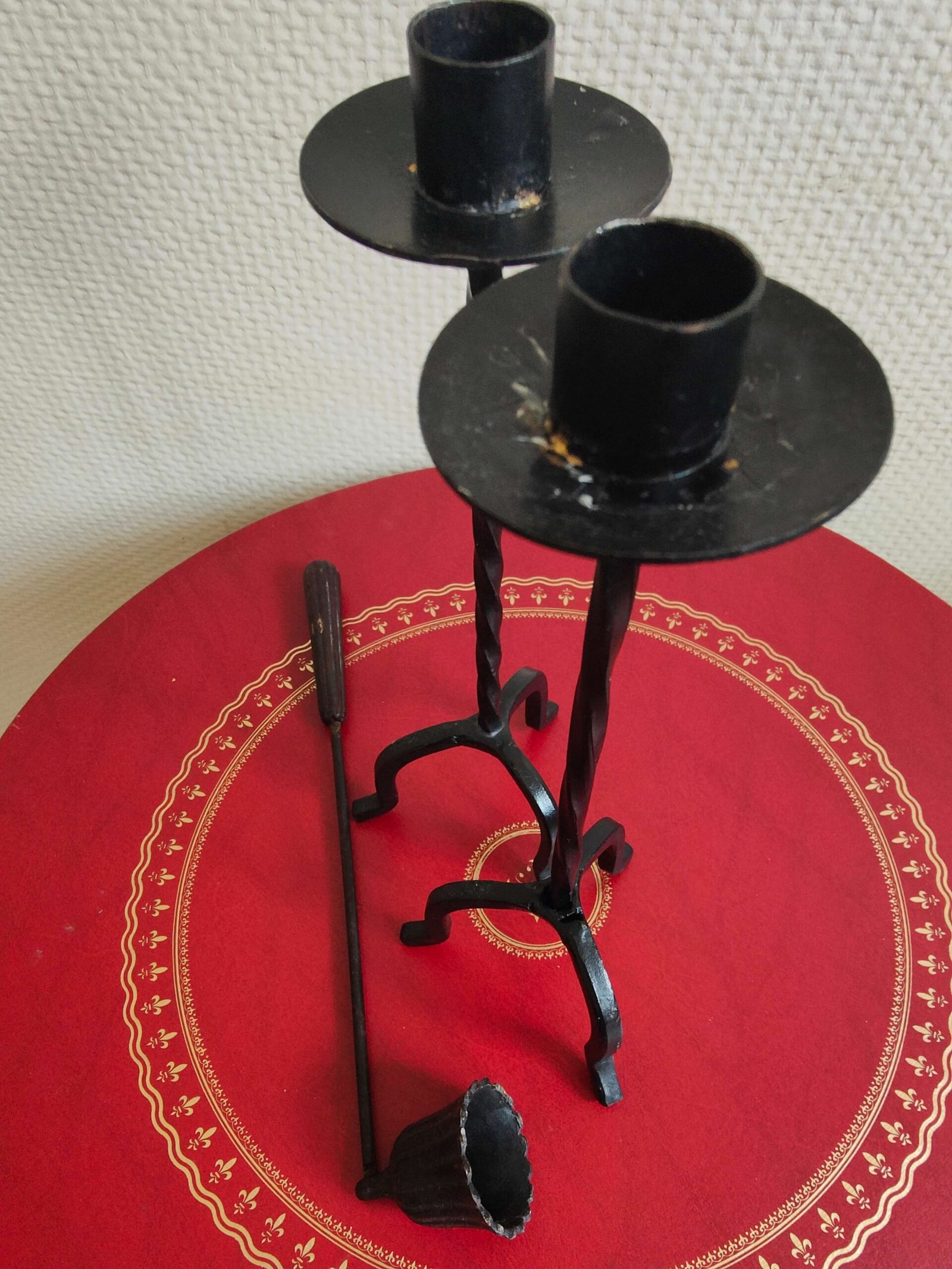 - Lot : 2 bougeoirs + 1 éteignoir assorti