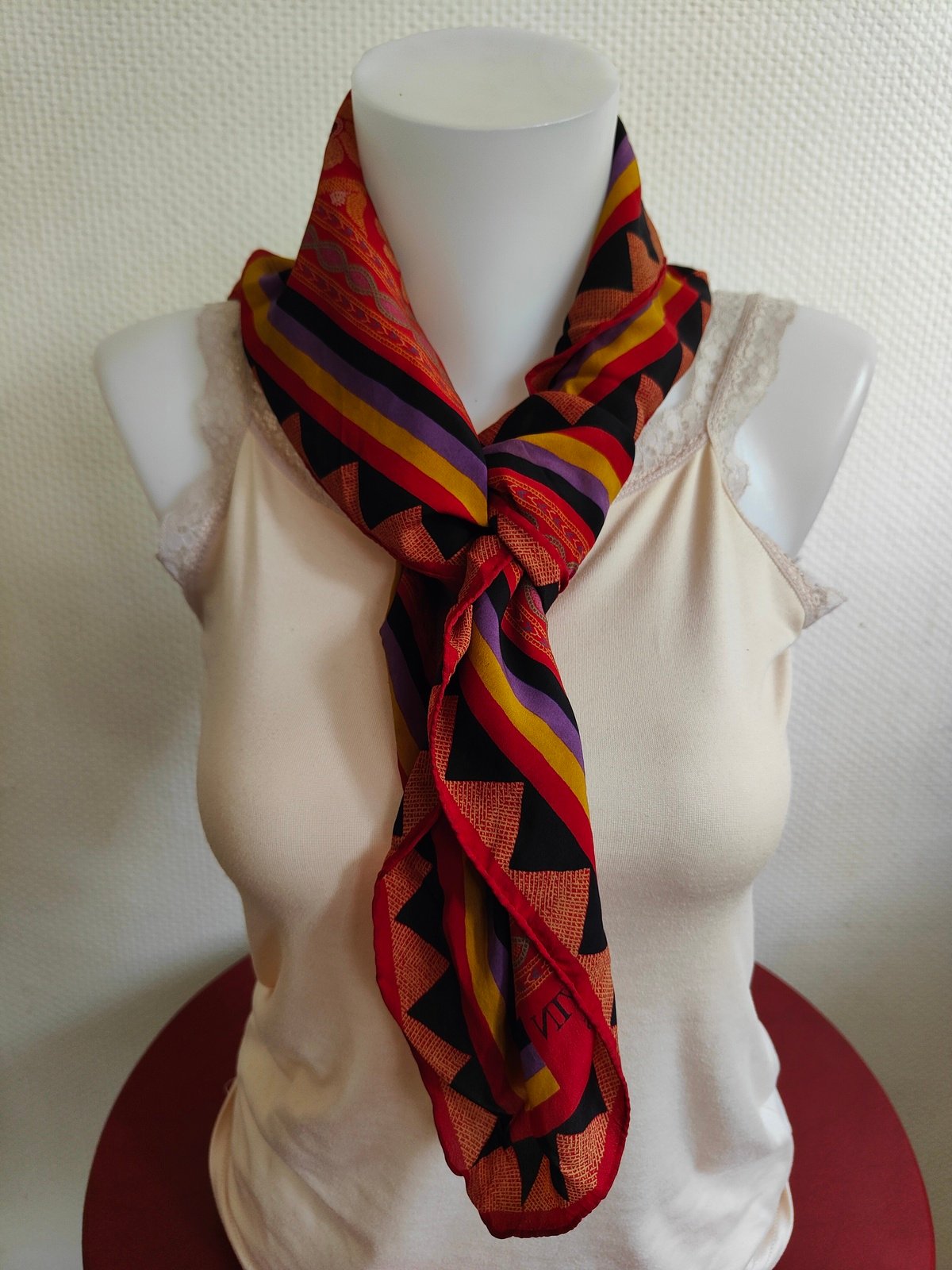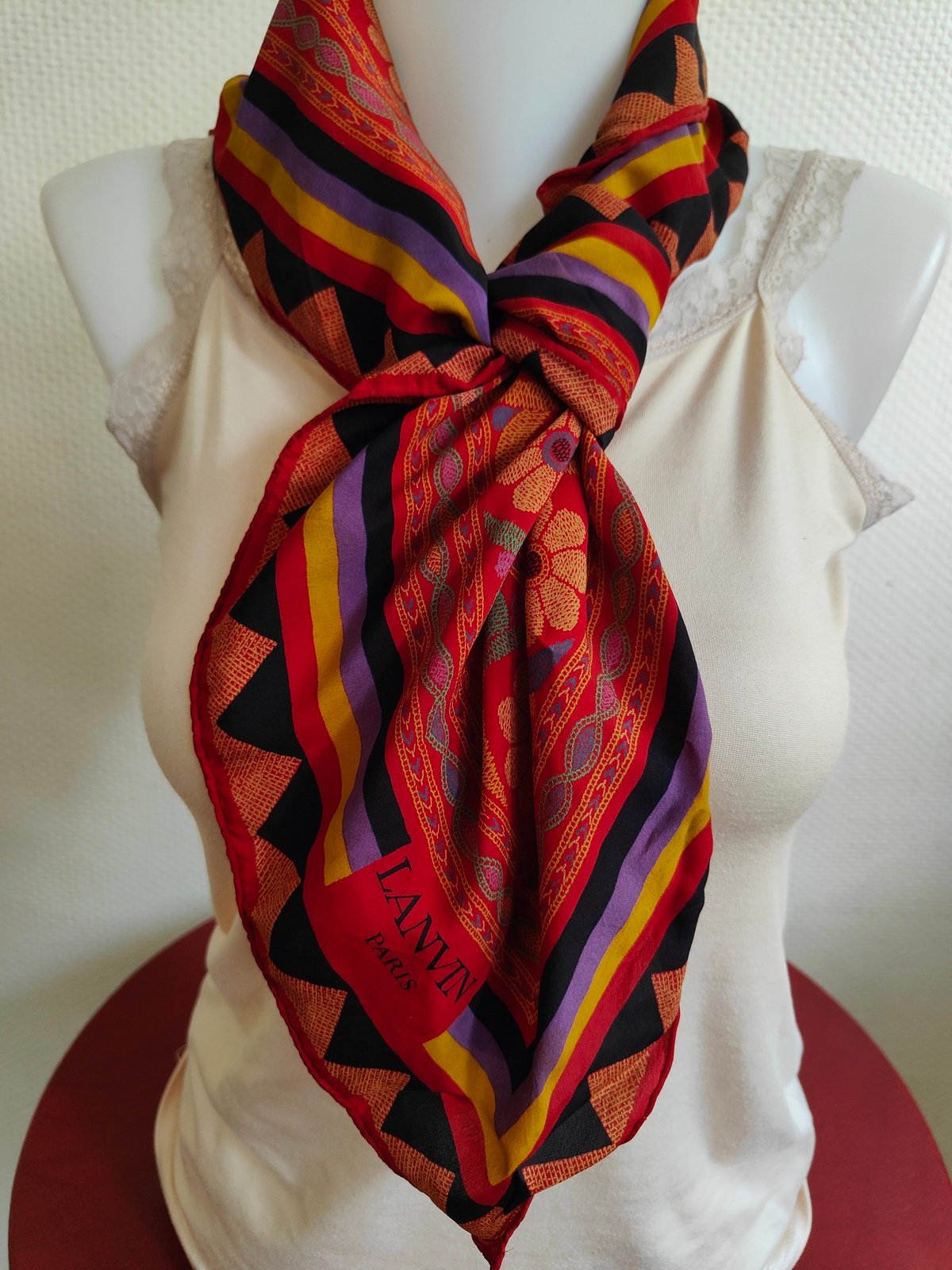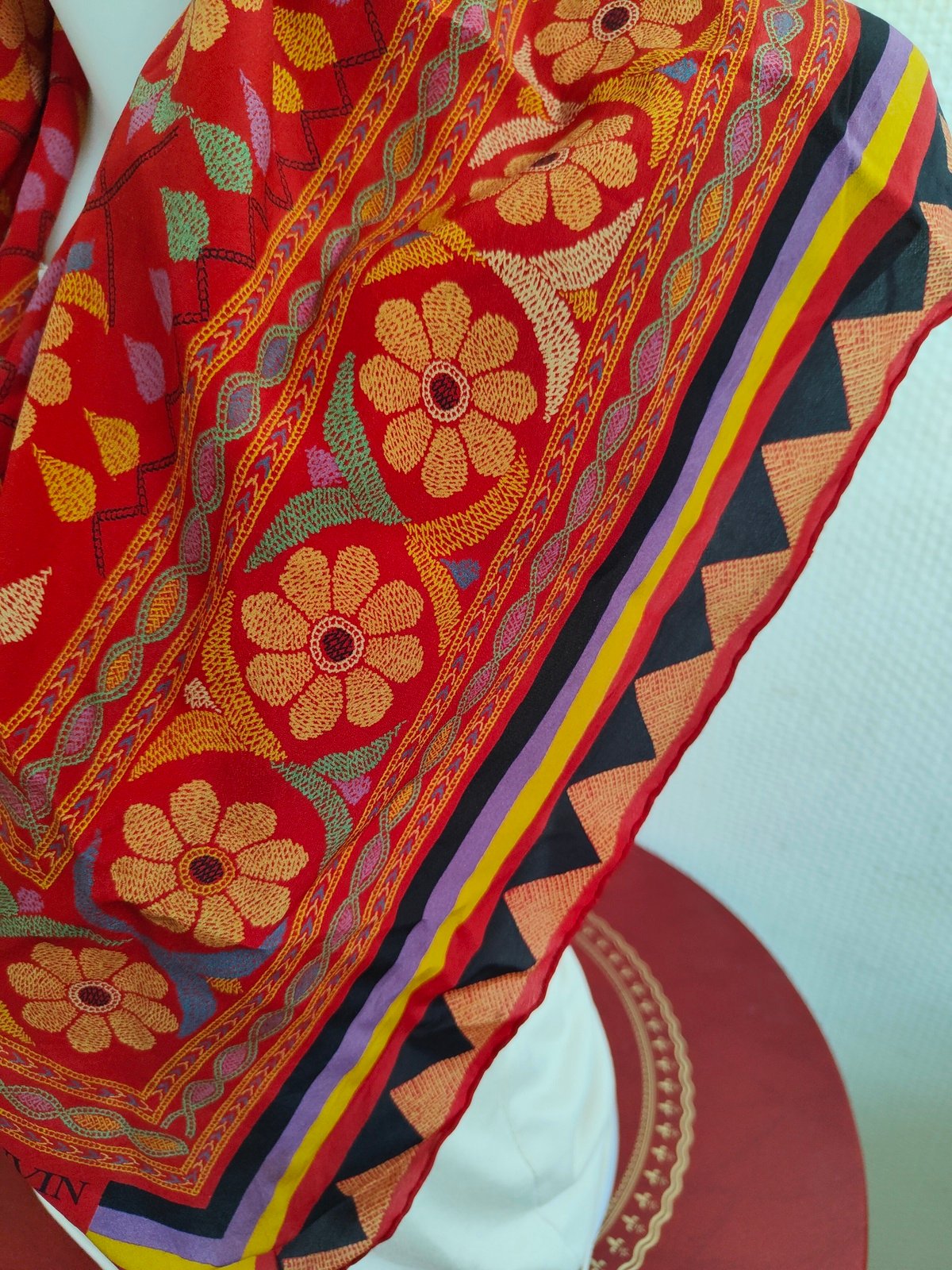 Magnifique foulard carré de soie signé Lanvin Paris.