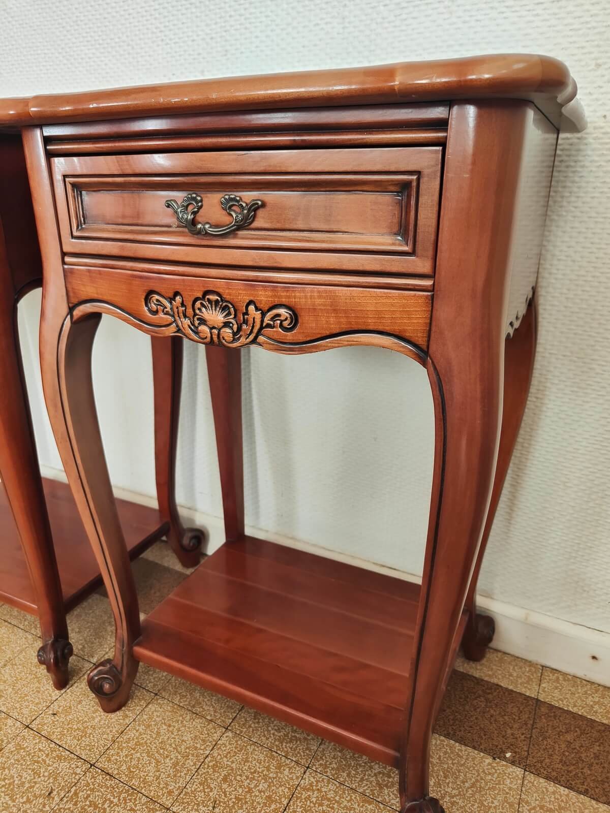 Cette paire de chevet en bois sculpté est une belle trouvaille de brocante en ligne. Avec leur travail artisanal soigné et leurs lignes élégantes, elles apportent immédiatement du cachet à une chambre, un salon ou même une entrée.
