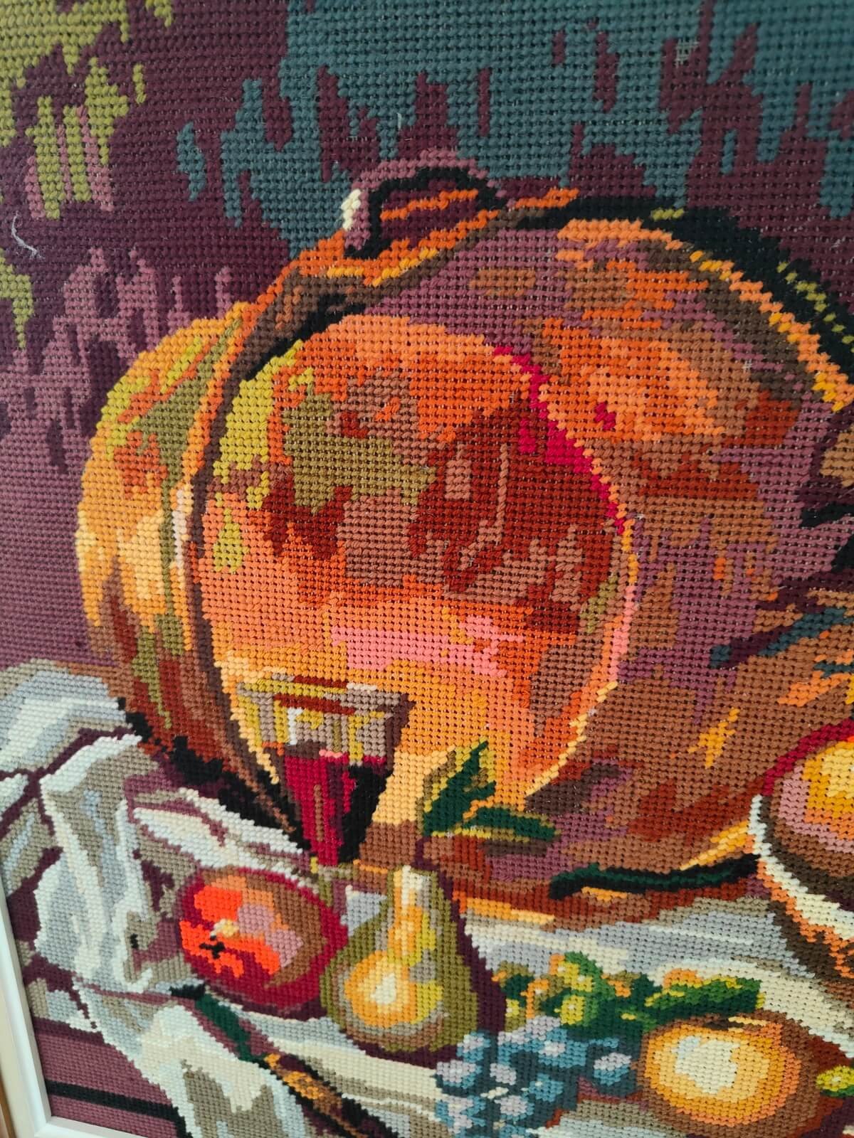 Ce tableau canevas vintage, fruits d’automne est un grand format d’ouvrage réalisée avec beaucoup de précision. Les couleurs lumineuses et chaleureuses apportent immédiatement une sensation de confort dans une pièce de vie.