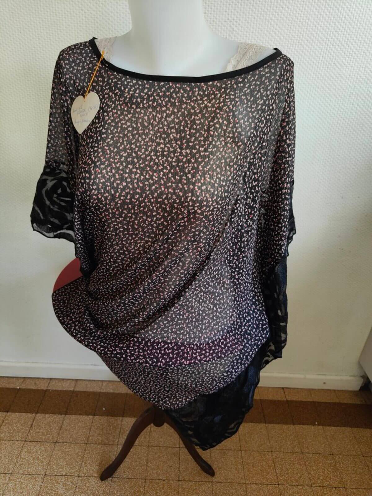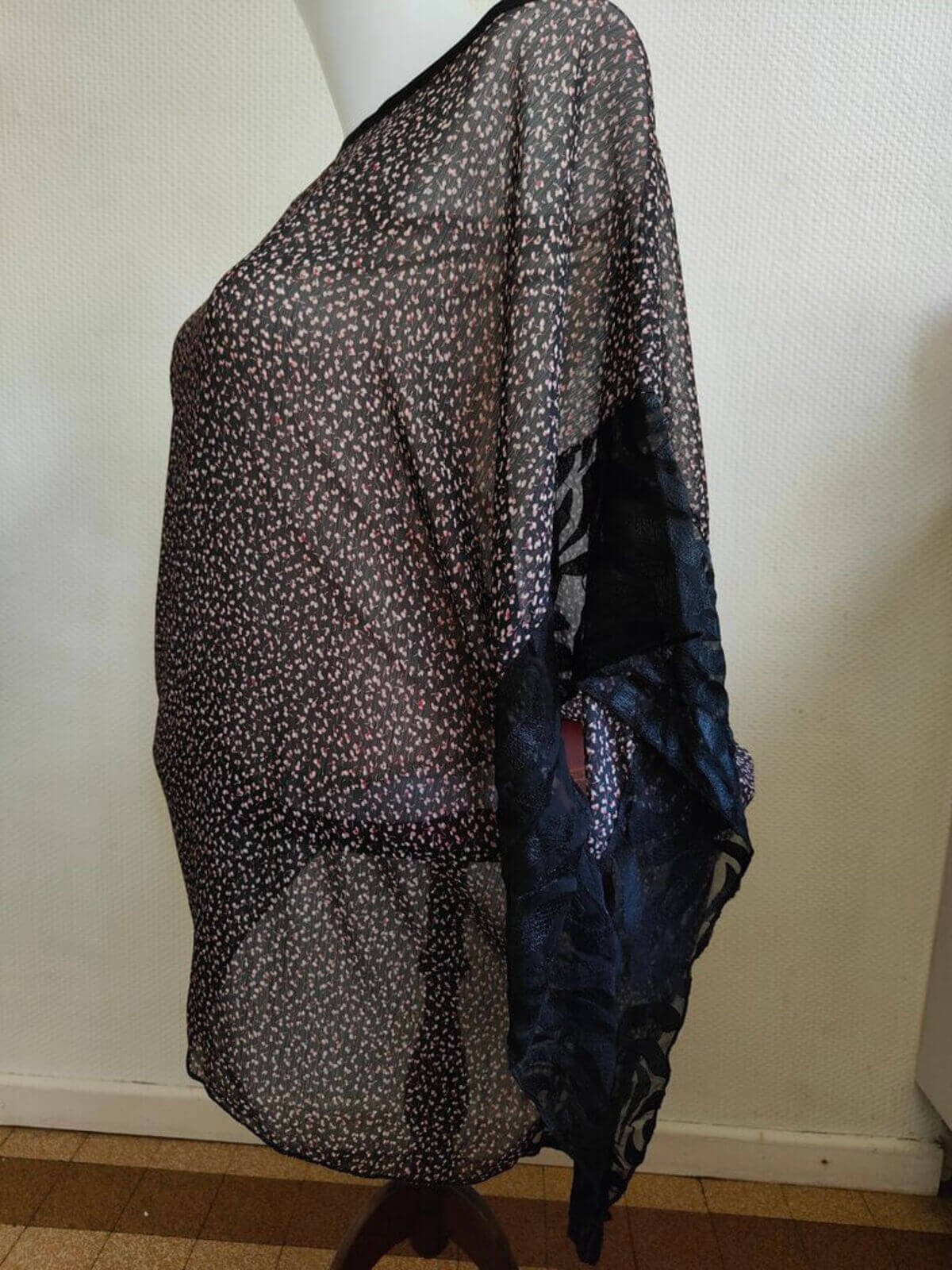 Créée par une jeune créatrice, cette tunique est une pièce unique issue d’un vide dressing.